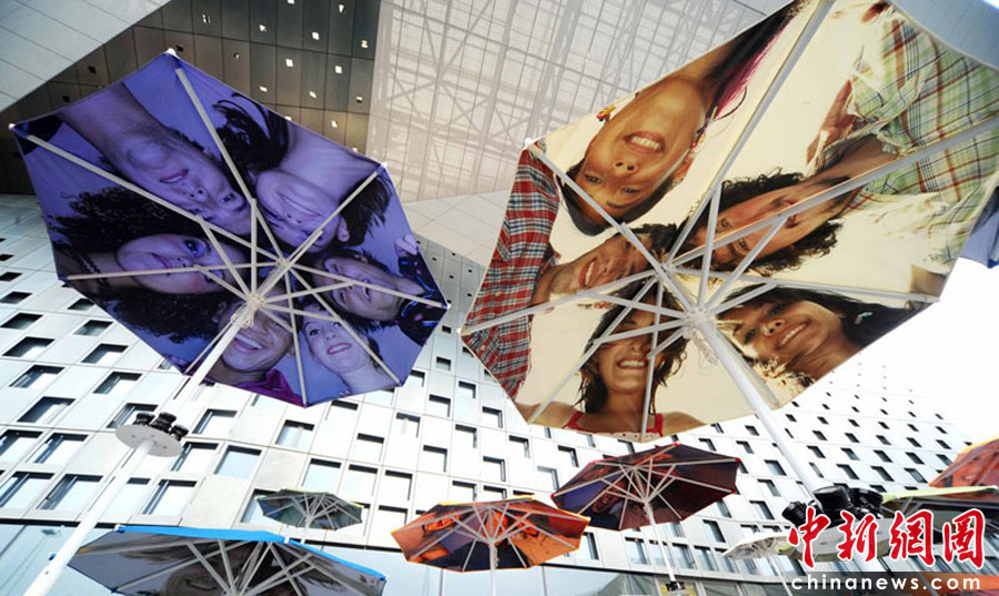 世博園區(qū)“微笑花傘”迎四方賓朋