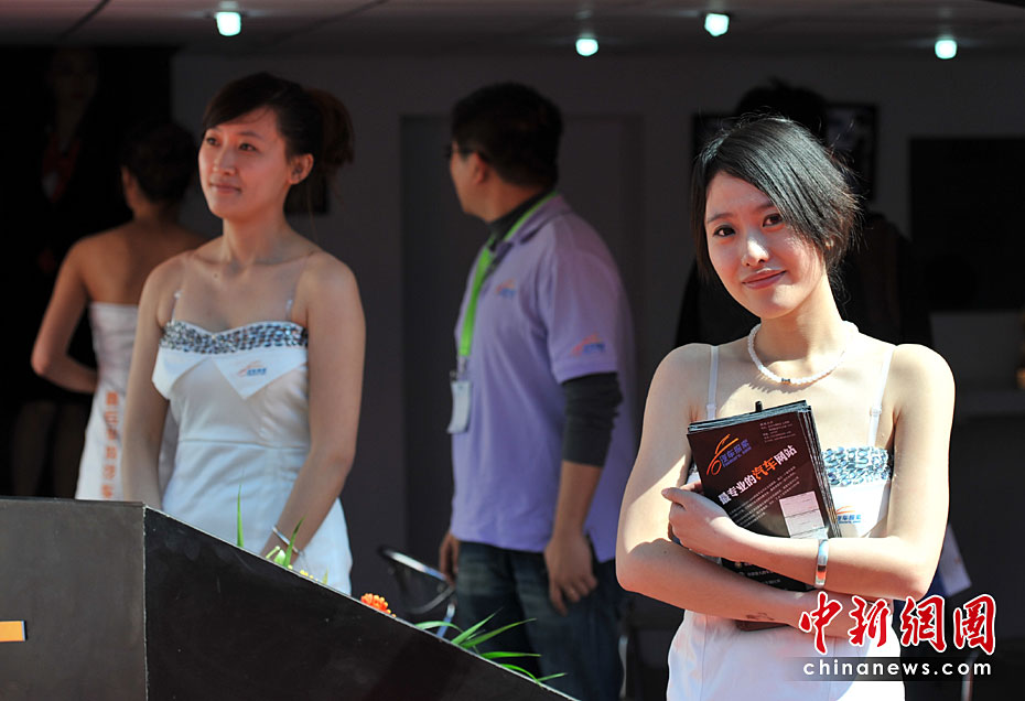 “第十一屆北京國際車展”場內車模爭奇斗艷,場外美女不甘示弱。中新網記者 金碩 攝