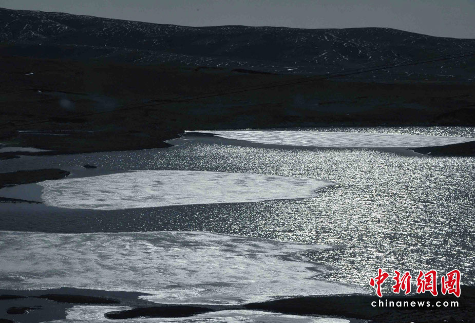 屬于長江、黃河、瀾滄江三江源地區(qū)的青海玉樹地震災區(qū),自然保護區(qū)的18個核心區(qū)域中,有10個位于玉樹州境內(nèi),占總面積的72%。4月下旬,記者深入災區(qū)縱深各地,災后重建正面臨保護生態(tài)環(huán)境、為三江源建起一道生態(tài)屏障的難題;近日緊迫的防疫工作,必須使用滅菌效果好、對環(huán)境無污染的消毒劑。圖為星羅棋布的湖泊正在春風化冰之時。中新社記者 賈國榮攝