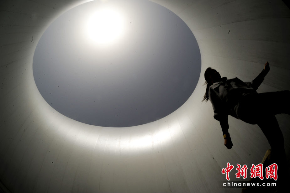 4月27日,一位女士走過上海世博園芬蘭館的圓形天井。中新社發(fā) 廖攀 攝