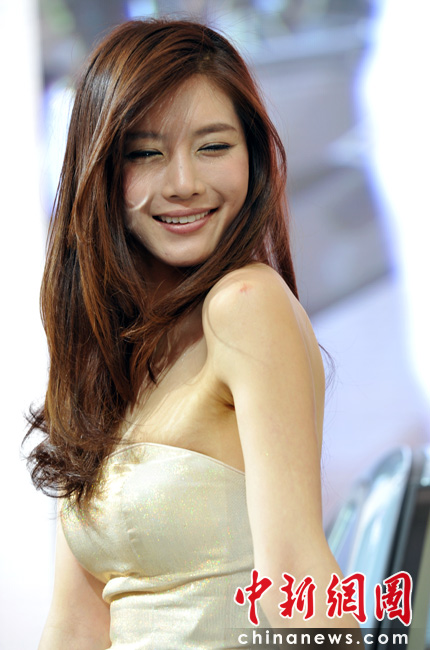 “第十一屆北京國際車展”是名車新品搶先亮相的舞臺,也成了車模們爭奇斗艷的場所,參觀者在車展中可以享受兩道視覺大餐。中新網(wǎng)記者 金碩 攝