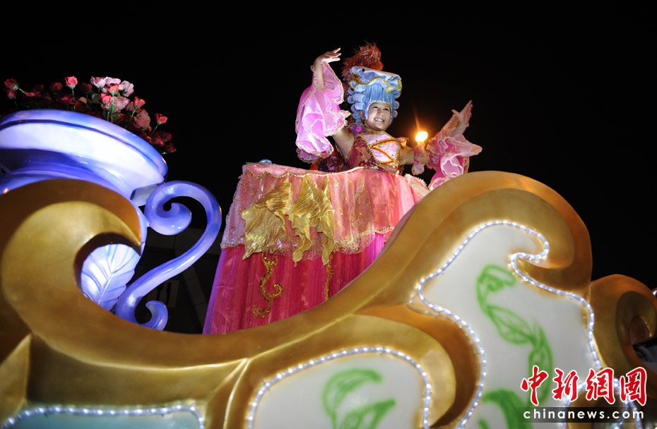 5月2日晚,由一輛輛充滿異域風(fēng)情的花車和身著盛裝的表演者組成的“歡樂盛裝大巡游”在世博園區(qū)舉行。中新網(wǎng)記者 王紅綱 攝