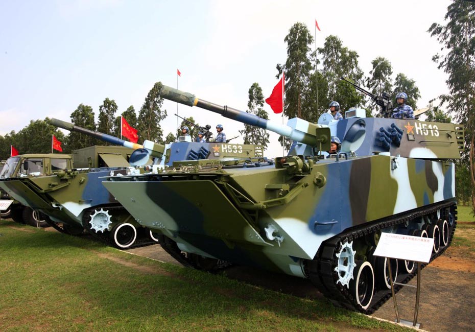 海軍陸戰(zhàn)隊(duì)兩棲突擊車在慶典儀式上進(jìn)行展示。圖片來源:新華網(wǎng) 查春明攝