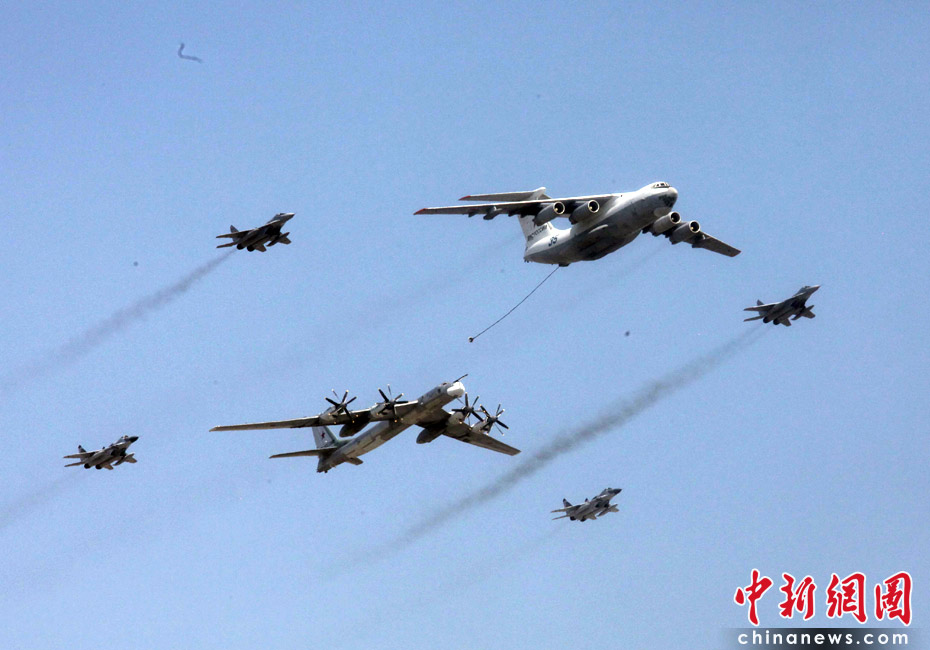 5月9日,俄羅斯在莫斯科紅場(chǎng)舉行盛大的閱兵式,慶祝衛(wèi)國(guó)戰(zhàn)爭(zhēng)勝利65周年。莫斯科時(shí)間5月9日上午10點(diǎn)(北京時(shí)間9日下午2點(diǎn))許,閱兵式正式開始。圖為空中梯隊(duì)飛越紅場(chǎng)上空。中新網(wǎng)記者 張朔 攝