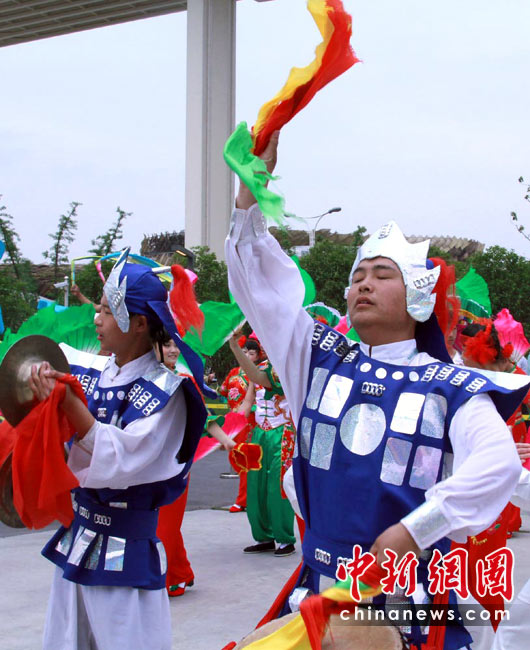5月14日,上海世博會(huì)“河北活動(dòng)周”在寶鋼大舞臺(tái)啟幕,戰(zhàn)鼓、旱船、拉花、草編、石雕、年畫(huà)、雜技、皮影戲……燕趙大地的傳統(tǒng)絕活一一登場(chǎng)!昂颖被顒(dòng)周”自14日持續(xù)至18日,將圍繞“京畿神韻”的主線,向世界展示河北省的經(jīng)濟(jì)和藝術(shù)魅力,是繼直轄市北京、天津之后,第一個(gè)由省份在世博會(huì)上舉辦的活動(dòng)周。中新社記者 殷春永 攝