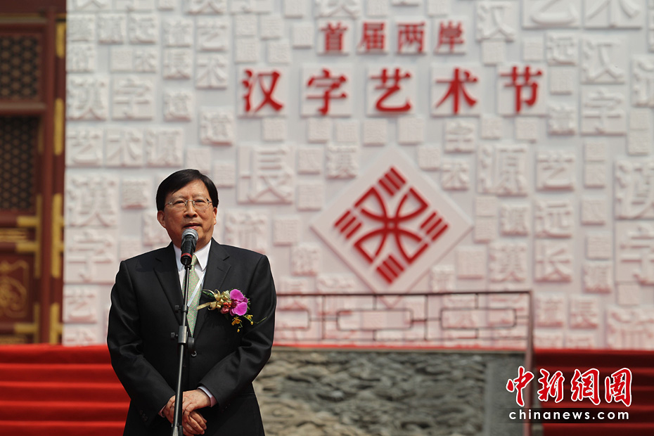 5月15日,首屆“兩岸漢字藝術節(jié)”新聞發(fā)布會在北京孔廟舉行。原文化部長、著名作家王蒙與臺灣文化總會會長劉兆玄等共同書寫漢字——“漢字藝術源遠流長”。 中新社發(fā) 蘇丹 攝