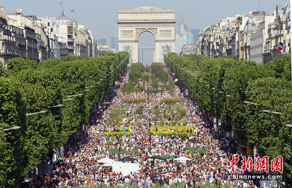 5月24日,法國總統(tǒng)薩科齊和妻子布呂尼參觀在法國巴黎舉行的“自然首都”展。該項展覽是由街頭藝術(shù)家加德·魏爾聯(lián)手法國“青年農(nóng)民協(xié)會”和林業(yè)協(xié)會共同發(fā)起的的,將百余種農(nóng)作物、樹木和動物“齊聚”法國首都巴黎的香榭麗舍大街,令這條“香街”變身“綠色的自然世界”。圖片來源:中國新聞網(wǎng)