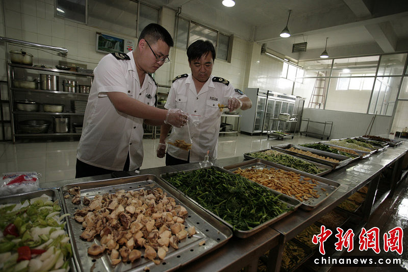 2010年6月4日,山東省濰坊市衛(wèi)生系統(tǒng)的工作人員檢查濰坊城區(qū)的高考考點食堂,為高考“保駕護(hù)航”。對此,高新區(qū)衛(wèi)生局購置了針對農(nóng)殘、亞硝酸鹽、重金屬等快速檢測的食品安全快速檢測設(shè)備,確?忌嬍嘲踩。孫樹寶/CFP