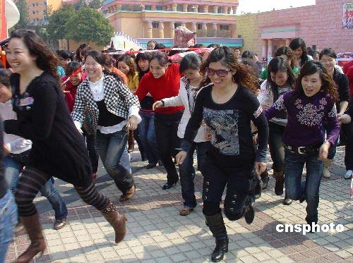 3月6日,長(zhǎng)沙世界之窗廣場(chǎng)內(nèi),千余名女士穿著4厘米以上的細(xì)跟高跟鞋賽跑,用這種特殊的方式紀(jì)念?yuàn)W運(yùn)年的婦女節(jié),并為北京奧運(yùn)加油。中新社發(fā) 肖前輝 攝
