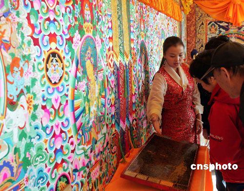 十一月二日,一年一度的北京秋季書市拉開帷幕。來(lái)自中國(guó)書店等五百余家參展商為廣大讀者奉獻(xiàn)上了二十余萬(wàn)種圖書“大餐”。中國(guó)青海熱貢藝術(shù)展也首次亮相書市。在書市的首日,有關(guān)十七大的圖書也成為熱銷圖書之一。中新社發(fā) 任海霞 攝