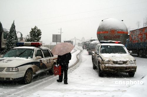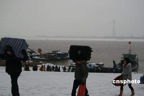 1月15日,贛北遭遇10年一遇的暴雪天氣,江西九江市及8個(gè)縣(市)發(fā)布暴雪藍(lán)色預(yù)警及道路結(jié)冰黃色預(yù)警信號(hào),因路面結(jié)冰,九江長(zhǎng)江大橋、鄱陽湖大橋及所有高速公路全部封閉,交通安全及通行受到嚴(yán)重影響。中新社發(fā) 張 俊 攝