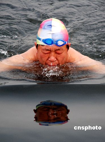 圖:安徽淮北冬泳愛好者破冰迎新春