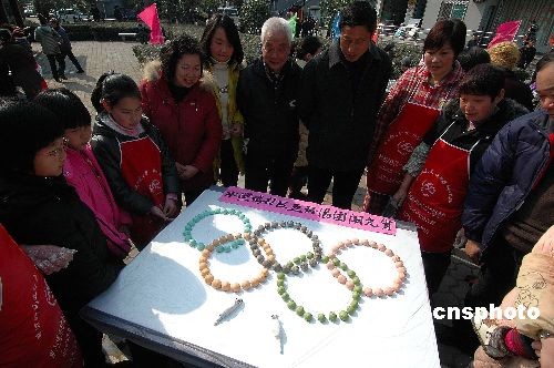 2月17日下午,“五環(huán)湯團(tuán)鬧元宵”活動在杭州水澄橋社區(qū)民安苑中心花園舉行,350名社區(qū)居民紛紛前來一展身手,一起制作“五環(huán)湯團(tuán)”,在喜迎元宵佳節(jié)的同時表達(dá)對北京奧運(yùn)的祝福與期盼。中新社發(fā) 引煒 攝