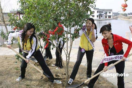 3月12日植樹節(jié),參加2008國際旅游小姐中國總決賽的30多名選手,在浙江古鎮(zhèn)西塘開展了植樹活動(dòng),姑娘們開心地種上一棵棵桂花樹,增強(qiáng)了綠色環(huán)保意識(shí)。2008國際旅游小姐中國總決賽晚會(huì)將于3月15日舉行,產(chǎn)生的冠軍將代表中國參加全球總決賽。中新社發(fā) 劉鷹 攝