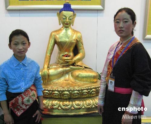 5月6日,在北京中國國際貿(mào)易中心舉辦的“2008北京國際藝術(shù)博覽會”上,西藏攀德達杰職業(yè)技術(shù)福利學(xué)校學(xué)生展示了該學(xué)校學(xué)生制作德佛教堂卡、佛像等佛教精美工藝作品。參展單位有:中國國內(nèi)外畫廊、藝術(shù)公司、藝術(shù)院校、畫院、藝術(shù)團體。作品分為:中國繪畫、西洋繪畫、雕塑、書法、攝影、裝置藝術(shù)等。中新社發(fā) 鄒憲 攝