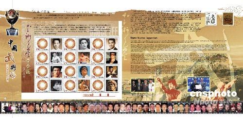 5月9日,全球首部以詳盡介紹武術(shù)發(fā)展為選題的郵票珍藏冊(cè)《中國(guó)武術(shù)》在北京舉行了首發(fā)式。鑒于李小龍將中國(guó)武術(shù)推向世界的貢獻(xiàn),中國(guó)武術(shù)協(xié)會(huì)特意留出一個(gè)版面專(zhuān)門(mén)介紹,并首次推出不干膠的李小龍肖像個(gè)性郵票,肯定了其在武術(shù)界的地位。中新社發(fā) 王歡 攝