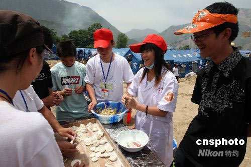 圖:北川受災民眾包餃子慰問志愿者