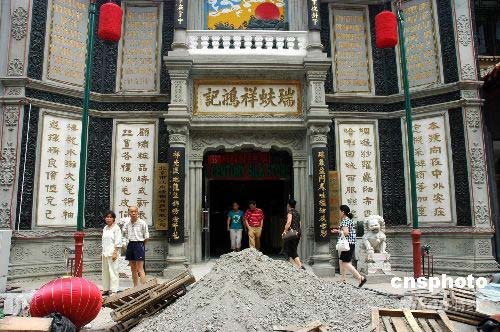 7月24日,北京前門大街及大柵欄商業(yè)街和糧食店街等街道的修繕基本完工。圖為瑞趺祥鴻記已經(jīng)開店營業(yè)。作為2008北京奧運特色商業(yè)街之一的大柵欄是北京最古老、最著名且又別具一格的古老街市和繁華的商業(yè)鬧市區(qū)。中新社發(fā) 張雙雙 攝