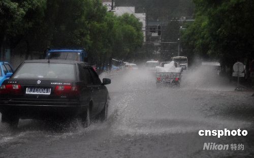 受今年第8號強臺風(fēng)“鳳凰”的外圍影響,7月28日上午,浙江溫嶺市普降暴雨,局部地區(qū)大暴雨,沿海海面風(fēng)力9-10級,并逐漸增強到10-11級。短時間的強降雨使部分路段積水,給市民出行造成了不便。中新社發(fā) 吳鵬飛 攝