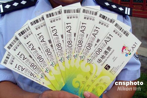 近日,北京海淀警方抓獲一向游客高價倒賣殘奧會門票的違法行為人王某,收繳鳥巢殘奧會田徑比賽通票10張。此案目前正在進(jìn)一步審理中。中新社發(fā) 海宣 攝