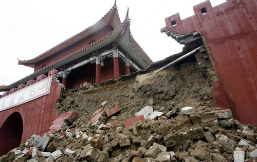 13日清晨,三亞崖州古城文明門城樓的西北角一段城墻發(fā)生坍。三亞市博物館的工作人員在進(jìn)行初步的現(xiàn)場(chǎng)勘查后,指出了城墻坍塌的主要原因:由于三亞連日大雨,文明門的城樓排水系統(tǒng)不暢,水滲進(jìn)城墻內(nèi),造成城墻內(nèi)的沙土膨脹,擠壓城墻。慶幸的是,坍塌發(fā)生在凌晨,沒有發(fā)生人員傷亡。