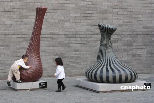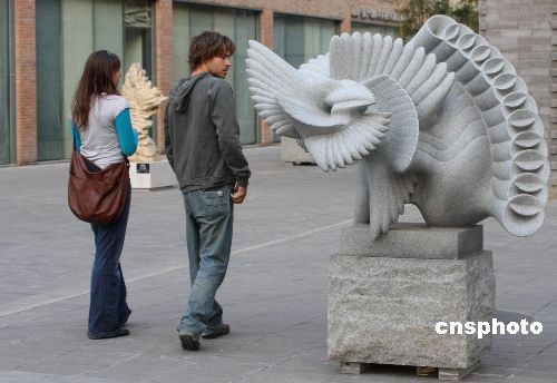 10月14日,不少游客在今日美術(shù)館欣賞數(shù)碼石雕。近日,以“科技與藝術(shù)的完美交融”為主題的數(shù)碼石雕全國巡展在北京今日美術(shù)館拉開帷幕。這些作品首先由美國藝術(shù)家使用三維數(shù)字設(shè)計解決方案,在電腦虛擬的環(huán)境中進行設(shè)計、分析、模擬和建模。而后,中國的雕刻師們參照三維快速成形打印設(shè)備制作的物理模型,以手工雕刻完成。中新社發(fā) 吳芒子 攝