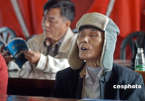 2008年11月29日,84歲高齡的海南瓊海市長(zhǎng)坡鎮(zhèn)藍(lán)田村民李士東老先生所著的《窗外微聞》一書發(fā)行儀式在長(zhǎng)坡鎮(zhèn)政府舉行。李老先生5年前曾自費(fèi)出版了一部24萬字的文集《藍(lán)田穗》,成為十里八鄉(xiāng)的一大新聞。隨后,他又花費(fèi)兩年時(shí)間,在香煙盒紙上一手持放大鏡一手拿筆寫成這部16萬字的文集并自費(fèi)印刷發(fā)行。中新社發(fā) 蒙鐘德 攝