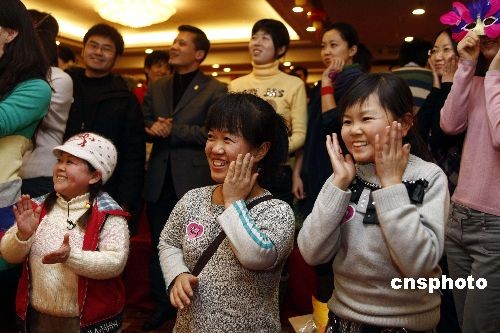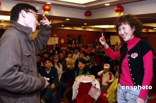 12月25日,三名單身“小矮人”與千余名北京青年共同參加相親會。在喜慶的圣誕節(jié)日氣氛和愉快的“融冰”游戲中,三名“小矮人”與同齡人消除了陌生感,愉快地歡度佳節(jié)。中新社發(fā) 楊可佳 攝