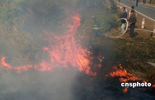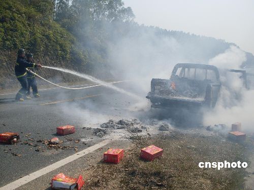 1月9日12點(diǎn)30分左右,廣西欽州市境內(nèi)一輛卡車突然起火,隨后引燃附近近千畝甘蔗林。欽州消防部門迅速趕到現(xiàn)場滅火,2個小時(shí)后大火被撲滅,事故無人員傷亡。中新社發(fā) 劉富強(qiáng) 攝
