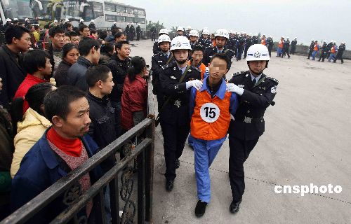1月16日,重慶市公安局將30名扒手分別押至該市渝中區(qū)朝天門、菜園壩長途汽車站、渝北區(qū)龍頭寺汽車站等主城區(qū)4個人口密集地區(qū),請市民辨認和舉報。該市公安局方面稱,這些扒手幾乎都是慣扒,且全部是最近在他們作案時抓到的。之所以押到車站鬧市,是希望曾經失竊的市民現(xiàn)場辨認和舉報,同時也是警方對扒手作案現(xiàn)場的恢復、重建等系列案偵工作手段。中新社發(fā) 吳子敬 攝