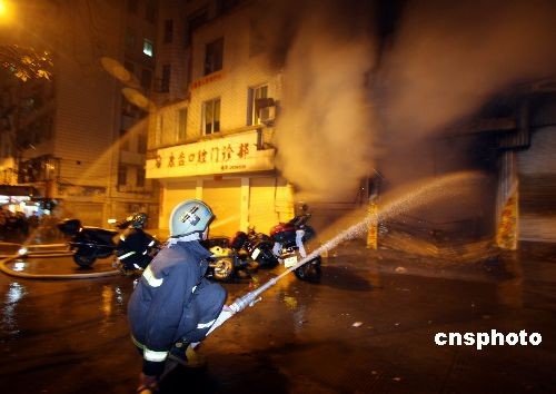 三月四日晚上九時許,福建省寧德市蕉城區(qū)建新路沿街一幢七層商品房的一層摩托車維修店鋪突然起火,樓上十余戶居民二十人被困,在消防官兵的奮力撲救下,被困群眾全部被安全疏散,火災(zāi)沒有造成人員傷亡。目前,消防部門正在對火災(zāi)原因進行調(diào)查。中新社發(fā) 陳強 攝