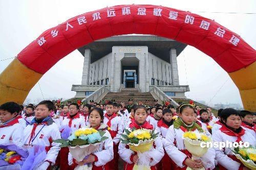 3月5日,當(dāng)日是周恩來(lái)誕辰111周年紀(jì)念日,周恩來(lái)故鄉(xiāng)——江蘇省淮安市楚州區(qū)數(shù)千社會(huì)各界人士齊聚周恩來(lái)紀(jì)念館廣場(chǎng),冒著綿綿細(xì)雨,緬懷敬愛(ài)的周總理。中新社發(fā) 李正林 攝
