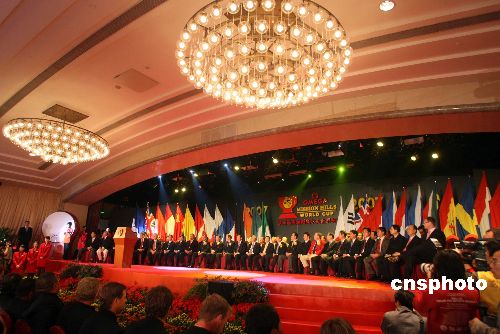 十一月二十一日,二〇〇七歐米茄觀瀾湖高爾夫世界杯開(kāi)幕式在深圳觀瀾湖東莞會(huì)所舉行,來(lái)自二十八個(gè)國(guó)家五十六名球手齊聚觀瀾湖展開(kāi)高爾夫世界杯的角逐。中新社發(fā) 陳文 攝