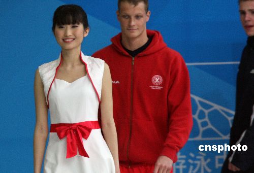 2月1日,“好運(yùn)北京”中國游泳公開賽舉行六個(gè)項(xiàng)目的決賽,以大學(xué)生為主的頒獎禮儀小姐為備戰(zhàn)北京奧運(yùn)會現(xiàn)場熱身。中新社發(fā) 任晨鳴 攝