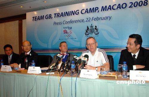 二月二十二日,英國奧運協(xié)會在澳門文華酒店舉行的記者會上宣布:英國奧運協(xié)會將在澳門設立訓練營,二百五十多名參加二00八年北京奧運會的英國運動員、教練及工作人員在奧運會舉行前兩至三周內,來澳門進行集訓。英國奧運協(xié)會向澳門特區(qū)政府及體育機構致謝,感激他們在籌備訓練營中給予的支持。中新社發(fā) 史利 攝