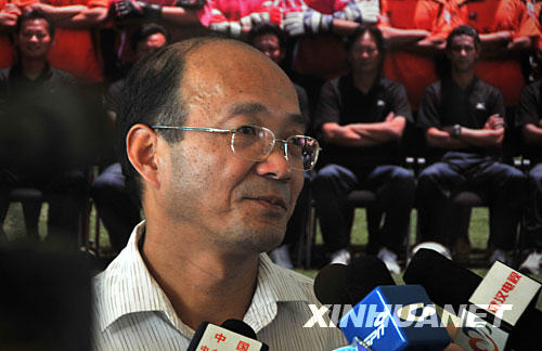 10月2日,湖北武漢職業(yè)足球俱樂部總經(jīng)理徐志強在新聞發(fā)布會上接受媒體采訪,就宣布正式退出中超聯(lián)賽一事對媒體進行說明。 新華社記者萬后德攝