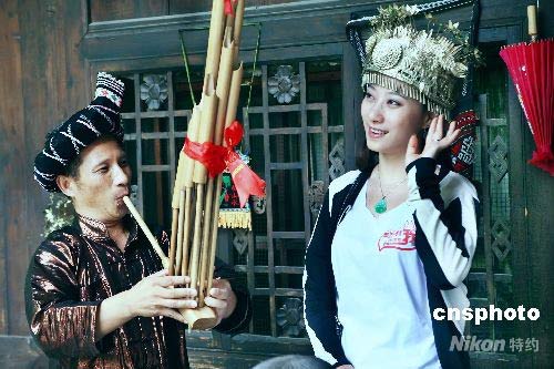 瑤族美女歌手米亮從奧運圣火回到祖國的那一刻起,就一路追隨著圣火的腳步,帶著未完成的作品《小夢想》,沿著圣火傳遞的路徑收集聲音和簽名,希望用一首萬人合唱的原創(chuàng)歌曲作為奧運獻(xiàn)禮。在到達(dá)江西老區(qū)境內(nèi)時,正遇四川汶川縣發(fā)生強(qiáng)烈地震。于是,她毫無猶豫的加入到捐款的隊伍,并沿途收集了近千名兒童為災(zāi)區(qū)小朋友親手制作的祝?,然后又沿途轉(zhuǎn)送給在各地治療的災(zāi)區(qū)兒童。被稱為圣火傳遞中救災(zāi)捐款的最美女孩。 2008年6月8日,米亮追逐圣火到達(dá)南寧,她首先做的一件事,就是到廣西區(qū)人民醫(yī)院看望災(zāi)區(qū)受傷的兒童,并送上祝福卡。美女米亮,為南寧的景色所傾倒,禁不住換上民族服裝,在南寧留下美好印記。中新社發(fā) 駱文剛 攝
