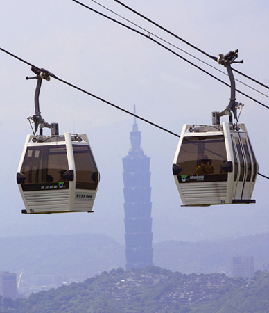 雖有打雷閃電停駛、當(dāng)機(jī),以及悶熱的不良現(xiàn)象,大家還是無法抵擋高空美景誘惑,臺北貓空纜車7月營運以來已有200萬人次搭乘。圖為貓纜遠(yuǎn)眺臺北101。記者周永受/攝影