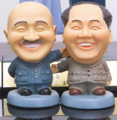 據(jù)臺(tái)灣《聯(lián)合報(bào)》報(bào)道,國(guó)民黨黨史館主任邵銘煌也證實(shí),為迎接大陸觀光客,黨史館與廠商制作一系列歷史人物公仔,除蔣介石、宋美齡夫婦的Q版公仔,還有蔣介石與毛澤東“歡笑言和版”,六十年前的硝煙炮火都在一笑中化解。