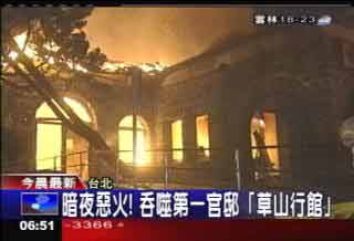 說(shuō)起2007年4月7日凌晨的那把大火,時(shí)任臺(tái)北“草山行館”主任的黃信彰至今仍不勝唏噓。他趕到行館時(shí),木結(jié)構(gòu)部分已經(jīng)燒光了,只看到石墻,幽幽地冒著煙。他又立刻跑到原先計(jì)算機(jī)監(jiān)控室的位置,監(jiān)控錄像里或許能找到起火的線索,但是計(jì)算機(jī)硬盤(pán)已經(jīng)被燒成幾個(gè)黑色的球。