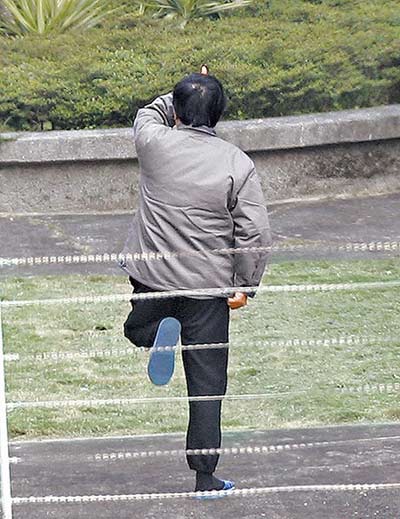 電視畫面顯示,陳水扁在放風中,沿著看守所內(nèi)的小操場,進行慢跑,大約持續(xù)了20多分鐘左右;放風時,也由幾名員警戒護,隨時注意周邊狀況,警察也手持望遠鏡,注意四周制高點的狀況。