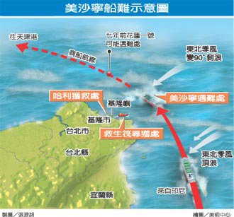 再者,兩艘船都是東北季風增強之際,四十五度角頂風從臺灣東岸北上,經(jīng)三貂角后,船頭由正北轉向西北,東北季風變成垂直從右側襲擊,風浪也是側浪沖撞拍打。此時,如果隔艙沒做好,艙內(nèi)鐵砂或砂石會不斷左移造成傾斜;傾斜過大遇大浪,船舶就會瞬間側翻,并迅速沉沒。
