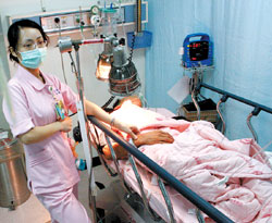 洪某受傷躺在醫(yī)院。(圖:臺(tái)灣《中國(guó)時(shí)報(bào)》)