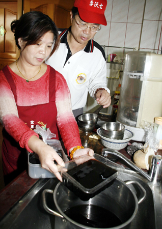 金門縣金寧鄉(xiāng)安岐村住戶自來水管,二十五日中午流出黑色污水,嚇壞村民。“中央社”圖 倪國炎 攝
