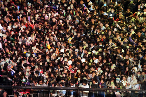 臺(tái)北市政府前廣場(chǎng)十二月三十一日舉辦“2008臺(tái)北最HIGH新年城”跨年晚會(huì),炫麗的舞臺(tái)燈光和精彩的藝人表演,吸引上萬(wàn)的民眾一起前來參加跨年晚會(huì)。(“中央社”圖;張皓安攝)