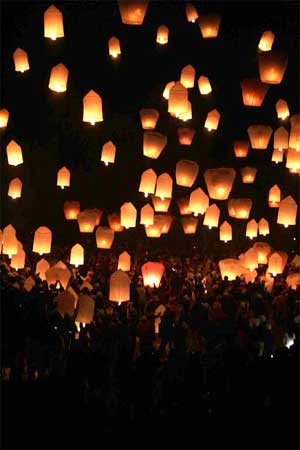 圖:臺北縣數(shù)千民眾燃放天燈祈好運