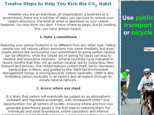 6月5日是聯(lián)合國(guó)世界環(huán)境日。據(jù)《聯(lián)合報(bào)》報(bào)道,聯(lián)合國(guó)日前已經(jīng)特地在官方網(wǎng)站鼓勵(lì)世人以五種方式響應(yīng)環(huán)保節(jié)能。特別的是,網(wǎng)站上提倡以大眾交通工具和自行車取代開(kāi)車,采用的廣告主角是馬英九。