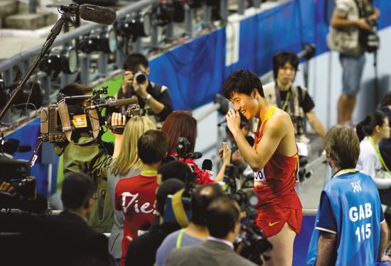 16時(shí)45分,奧林匹克中心文字記者工作間,一角的空地上站著幾位拿著手機(jī)連線的記者,“劉翔”之聲不絕于耳。