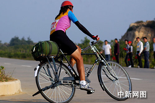中新網(wǎng)10月28日電 十月二十八日下午,第六屆全國農(nóng)運會“自行車載重”女子四十公斤二十公里比賽在福建惠安沿海大通道進(jìn)行,吸引了眾多當(dāng)?shù)厥忻裼^戰(zhàn)。