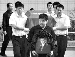 昨日清晨7點左右,羅京的兒子羅疏桐一身黑衣、手捧羅京遺像抵達八寶山。羅京的靈柩上覆蓋黨旗被抬下靈車,在李瑞英、王寧、康輝等央視同事和羅京親屬的護送下,羅京的靈柩被送入靈堂,這時人群中發(fā)出“羅京一路走好”、“羅京我愛你”的聲音,而現(xiàn)場更有不少群眾落下淚來。